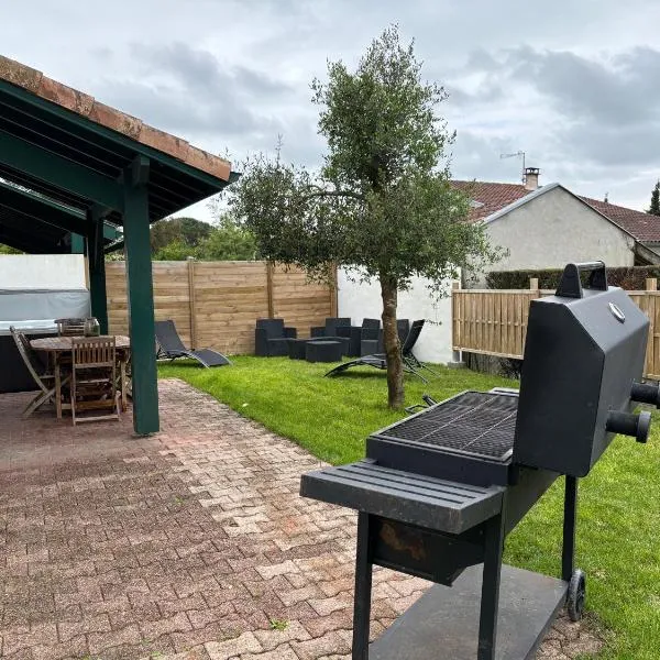 Chalet Zure Ondoan - SPA et piscine chauffée está situado en Tarnos, a 20 km de Biarritz Train Station y a 30 km de Saint Jean de Luz Train Station, y cuenta con hospedaje climatizado, patio y WiFi...