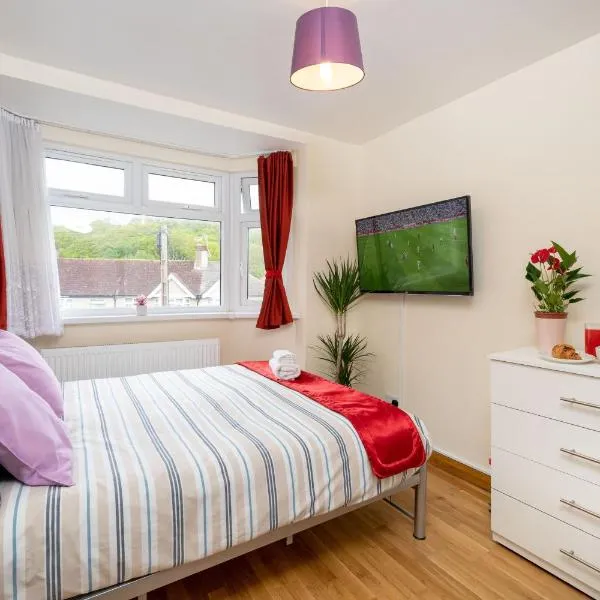 Craydene Road Erith享有花园景,配备露台和电热水壶,距离蓝水购物中心约有12公里。内部提供私人停车位。 这家家庭式住宿配备毛巾和床上用品。 这家家庭式住宿距离英图湖畔购物中心有14公里,距离布莱克希斯站有17公里。伦敦城市机场距离住宿有16公里。