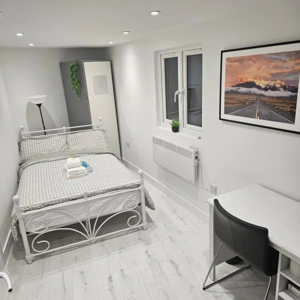 Luxury Ensuite Studio In Crayford Dartford Bexley London With Full Kitchen And Side Garden Alleyway Entrance坐落于Slades Green,距离蓝水购物中心有10公里,配备免费自行车、免费私人停车位和花园。这家住宿提供家庭间和儿童游乐区。旅馆也提供免费WiFi和付费机场接驳服务。