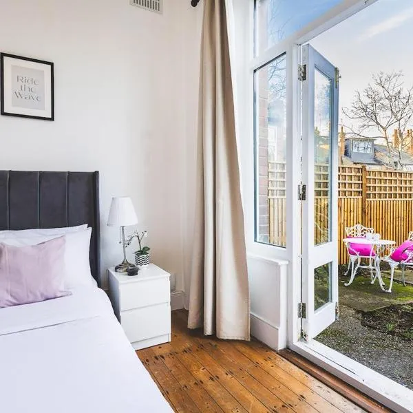 1 Bedroom near central London Kings Cross walking to Arnos Grove Tube, Alexandra Palace, Euston fica em New Southgate e fornece varanda térrea, jardim, e Wi-Fi grátis.