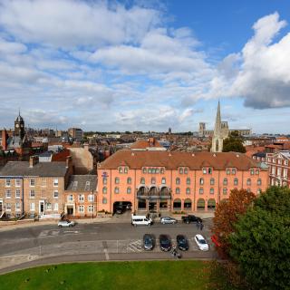 In the heart of historic York, this Hilton has 2 bars, 2 restaurants and is located opposite the ancient Clifford's Tower. perfect place to stay, the breakfast wasnt included but the price was ok for the delicious options. nice rooms and service. our view was just infont the castle!!