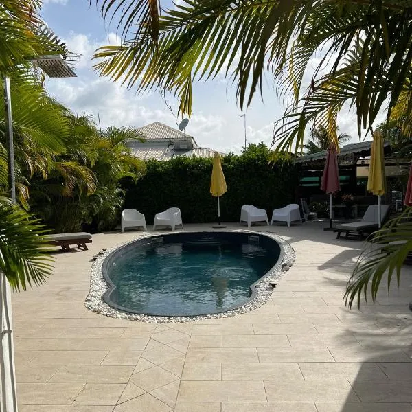 Résidence Bois Flotté坐落于Grande-Terre的圣安尼,距离乔兰·伍德海滩(Bois Jolan Beach)有不到17分钟步行路程,配备免费WiFi、烧烤设施、花园和免费私人停车位。 每间房间都提供露台、带冰箱的设施齐全的厨房、带沙发床休息区、平板电视以及带淋浴设施的私人浴室。住宿还配备微波炉、炉灶、吐司机和电热水壶。 这家度假屋供应欧陆式早餐。