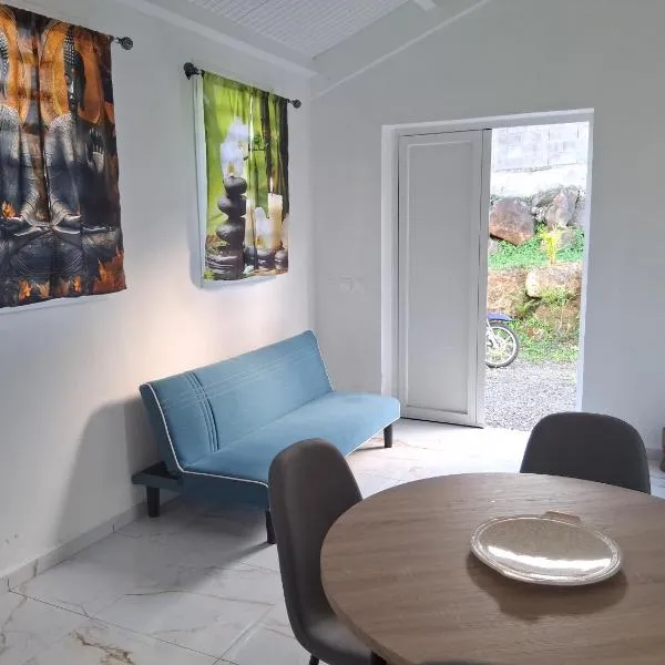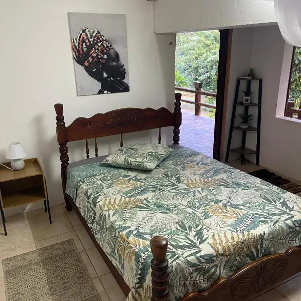 BUNG À ZIOTTE位于德赛,提供带免费WiFi的海景客房,配备户外游泳池、花园和共用休息室。这家住宿距离大昂斯海滩(Grande Anse Beach)有15分钟步行路程,配备露台和免费私人停车位。 这家空调度假屋配有1间卧室、起居室、带冰箱和咖啡机的设施齐全的厨房以及1间带淋浴设施的浴室。这家度假屋也提供休息区和1间浴室。...