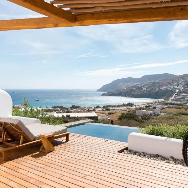 Villa Artisti Mykonos har en utomhuspool, en trädgård och en terrass och erbjuder boende i Agrari med gratis WiFi och utsikt över havet.