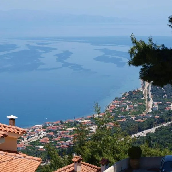 Peloponnese Hideout - White house with the sea view se může pochlubit výhledem na hory a poskytuje ubytování s balkonem a kávovarem. Klášter Mega Spileo se nachází přibližně 34 km odtud.