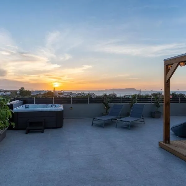 MD Horizon with private Jacuzzi near the beach se nachází v destinaci Anissaras, nedaleko od zajímavých míst jako Pláž Analipsi, a nabízí zahradu, terasu a balkon s výhledem na město.