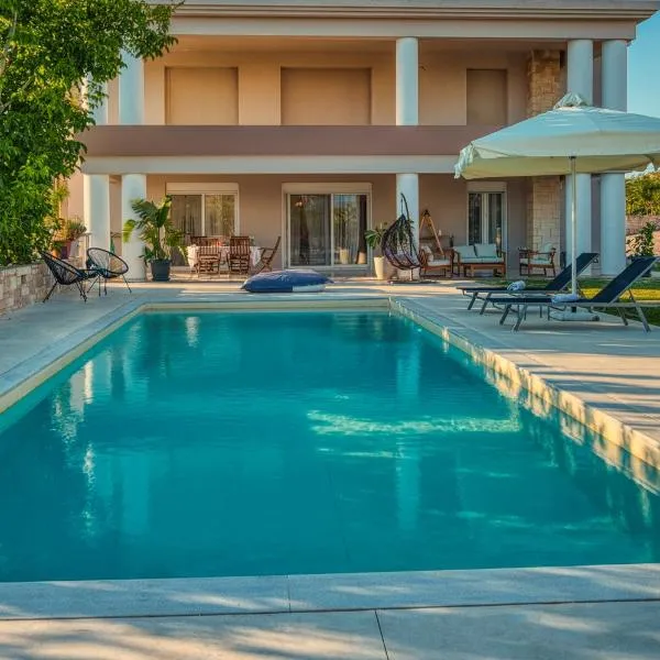 Anna Luxury Villa by Cretevasion享有山景,提供阳台和咖啡机,距离克里特水族馆约有6公里。这家自助式别墅拥有私人泳池、花园、烧烤设施、免费WiFi和免费私人停车位。 这家别墅提供3间卧室、3间浴室、床上用品、毛巾、平板电视、用餐区、设施齐全的厨房以及海景露台。这家空调别墅还配备休息区、洗衣机以及3间带淋浴设施的浴室。