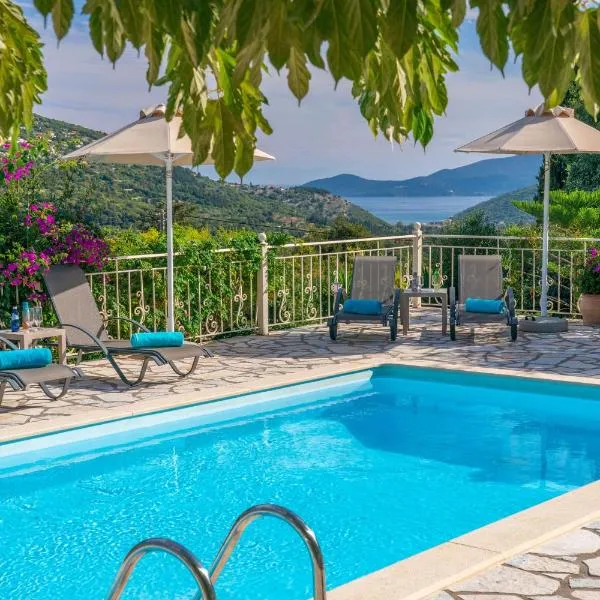 Ubytovanie Villa Fernando - F&A Golden Stone Villas sa nachádza približne 15 km od miesta Jaskyňa Melissani. Ponúka výhľad na hory a hostia tu majú k dispozícii sezónny vonkajší bazén a terasu.