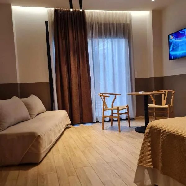 Hephaestus Appartments Litochoro -A1位于里托楚伦,提供带免费WiFi的山景客房,配有花园、露台和烧烤设施。这家公寓配备免费私人停车位。客人可以在周边地区体验滑雪和骑行等活动。 这家空调公寓配有1间卧室、起居室、带冰箱和咖啡机的设施齐全的厨房以及1间带淋浴设施和吹风机的浴室。这家公寓也为客人提供休息区和1间浴室。 住宿内部提供滑雪设备存放处。