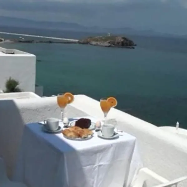 Grotta Hotel酒店坐落于美丽的山坡上,俯瞰纳克索斯镇(Naxos Town),距离海滩仅有几步之遥。 客人可以在阳光明媚的早餐室享用丰盛的早晨,在休息区品尝饮品,在俯瞰大海的宽敞凉廊上欣赏壮丽的景色。 所有客房均装饰高雅,一尘不染。每间客房都设有阳台或露台、空调、卫星电视、冰箱和保险箱。 酒店的信息服务台可为客人安排班车服务、岛上所有地区的游览、邻近岛屿的游览或航海旅行。