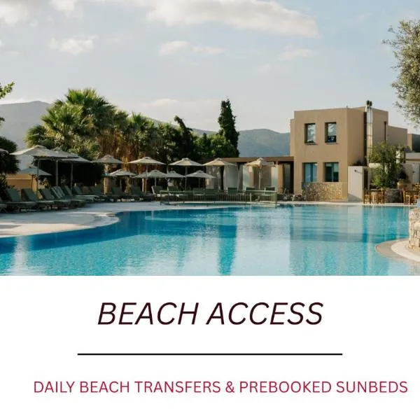 Seaside Gouves位于Kato Gouves,拥有季节性室外泳池、花园、私家海滩和共用休息室。这家住宿提供的设施包括餐厅、客房服务、24小时前台和免费WiFi。客人可以在酒吧享用饮品。 这家酒店的客房配备空调、书桌、平板电视、私人浴室、床上用品、毛巾和海景露台。客房拥有电热水壶。部分客房还配有阳台,其他客房享有池景。房间为客人提供冰箱。 Seaside Gouves供应单点早餐。