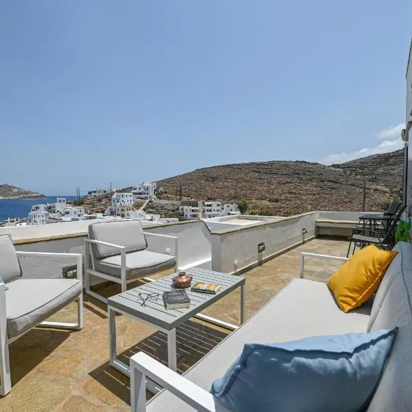 Sunflower Tinos House mette a disposizione un alloggio con giardino, sala comune e terrazza a Istérnia e dispone di WiFi gratuito e vista sul mare.