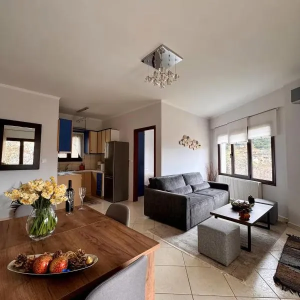 Triantafillia - Mountain Lodge by Ladonia Εpi享有花园景,提供庭院和咖啡机,距离迈纳伦约有44公里。这家住宿的客人可以使用阳台、免费私人停车位和免费WiFi。 这家公寓提供露台,享有山景,配有1间卧室、起居室、平板电视、带冰箱和烤箱的设施齐全的小厨房以及1间带淋浴设施的浴室。1间浴室提供吹风机。