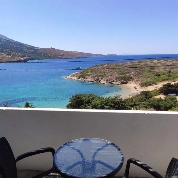 Calypso Aegean View享有山景,配备庭院和咖啡机,距离安德罗考古博物馆约有34公里。这家空调住宿距离阿吉奥斯佩特罗斯海滩(Agios Petros Beach)有17分钟步行路程,为客人提供免费WiFi,内部提供私人停车位。 这家公寓配有1间卧室、1间浴室、床上用品、毛巾、平板电视、设施齐全的厨房以及海景露台。1间浴室提供淋浴设施和吹风机。