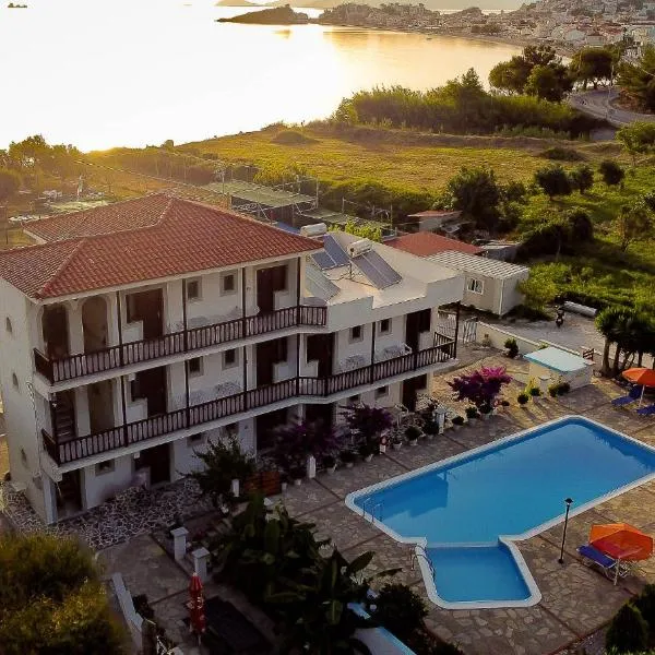 Iro's Residence位于Ágios Konstantínos,提供酒吧,还为驱车前来的客人提供免费私人停车位,距离普拉塔纳海滩(Platana Beach)有不到几步路,距离莫尼·弗伦塔有10公里。这家舒适型酒店配备花园,提供带免费WiFi和私人浴室的空调客房。这家酒店配有室外泳池和客房服务。 这家酒店的客房配有衣柜。Iro's Residence的部分客房享有海景。