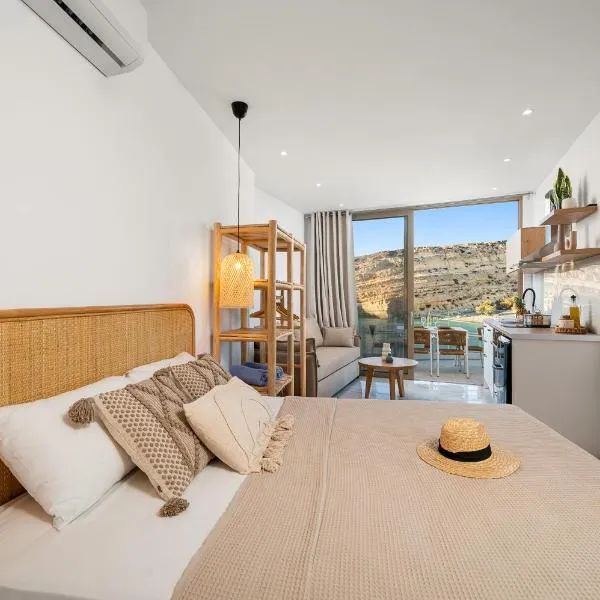 Matala Luxury Apartments位于马塔拉,距离马塔拉海滩(Matala beach)有几步路,提供带免费WiFi和空调住宿。客人可以使用露台。 这家公寓享有市景,为客人提供庭院、休息区、卫星频道平板电视、带冰箱和烤箱的设施齐全的厨房以及带淋浴设施和免费洗浴用品的私人浴室。住宿还提供微波炉和炉灶以及咖啡机和电热水壶。 如果客人想探索该地区,可以在周边地区体验徒步。