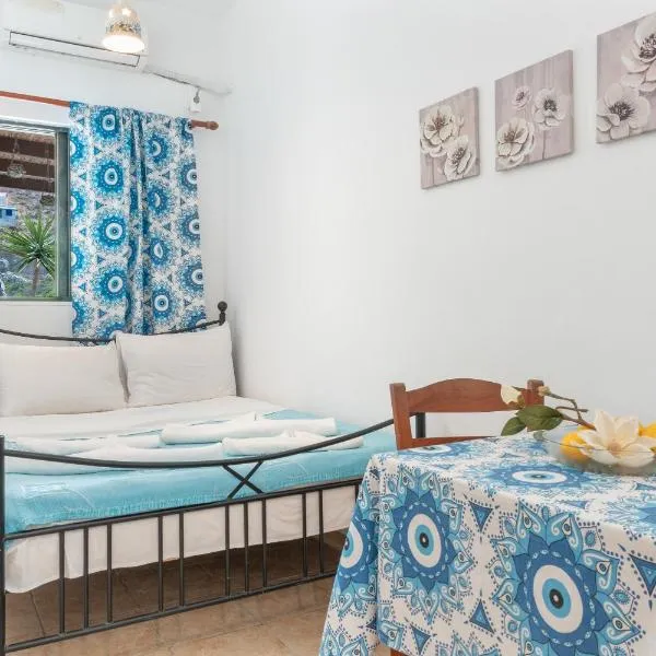 Tzamaros Studios nabízí zahradu, terasu a ubytování s klimatizací, balkonem a bezplatným Wi-Fi. Pláž Martinakia se nachází 600 metrů odtud. Na místě je k dispozici soukromé parkoviště.