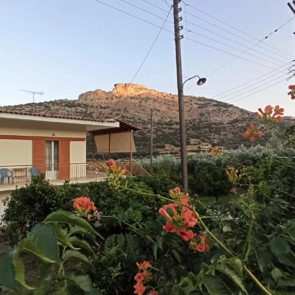 Sunny house at ancient Mycenae, close to Nafplio!位于Mykines,提供带免费WiFi的市景客房,配备花园和露台。这家住宿享有山景,配备阳台。 这家空调公寓配有2间卧室、起居室、带冰箱和电热水壶的设施齐全的厨房以及1间带淋浴设施和免费洗浴用品的浴室。1间浴室配有浴缸,也为客人提供吹风机,提供毛巾和床上用品。