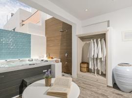 Legato Spa Suites With Private Pool nabízí venkovní bazén, terasu a ubytování s klimatizací, balkonem a bezplatným Wi-Fi. Pláž Agios Georgios se nachází 1,3 km odtud.