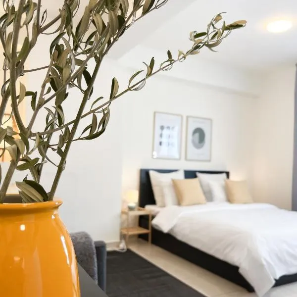 Steel & Oak-Stylish Stay Near Shore享有市景,提供露台和阳台,距离卡拉米察海滩(Kalamitsa Beach)约有17分钟步行路程。这家公寓享有海景和山景,也配有免费WiFi。 这家空调公寓配有1间卧室、起居室、带冰箱和咖啡机的设施齐全的厨房以及1间带淋浴设施和免费洗浴用品的浴室。这家公寓还配备休息区、洗衣机以及1间带吹风机的浴室。