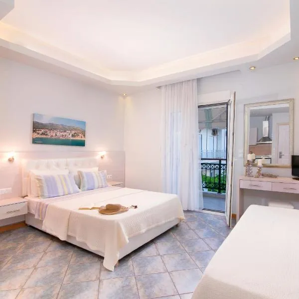 Studios Central Potos提供带阳台和免费WiFi的空调住宿,距离波托斯海滩(Potos Beach)有4分钟步行路程。 每间房间都配有市景露台、平板电视、设施齐全的厨房以及带淋浴设施、免费洗浴用品和吹风机的私人浴室。住宿还提供冰箱、炉灶和电热水壶。 这家公寓式酒店提供汽车租赁服务。