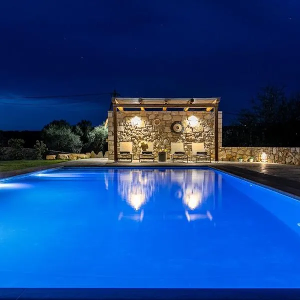Ampelos Cretan Villa - Private Pool & Heated Ozone Jacuzzi se nachází v destinaci Yerolákkos a nabízí kola zdarma, venkovní bazén, zahradu a ubytování s bezplatným Wi-Fi a výhledem na hory.