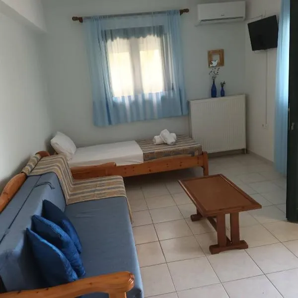 Repanidi Apartment D / Ρεπανίδι Διαμέρισμα Δ享有花园景,提供花园和庭院,距离科奇纳斯海滩(Kotsinas Beach)约有2.7公里。这家公寓配备免费私人停车位、24小时前台和免费WiFi。 这家空调公寓配有1间卧室、起居室、带冰箱和电热水壶的设施齐全的厨房以及1间带淋浴设施和吹风机的浴室。这家公寓也配备休息区和1间浴室。