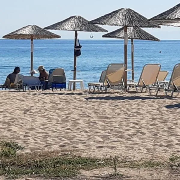 Obiekt Sandy Seaside Suites oferuje restaurację, sezonowy odkryty basen, ogród i taras. Odległość ważnych miejsc od obiektu: Plaża Flogita – kilka kroków od obiektu.