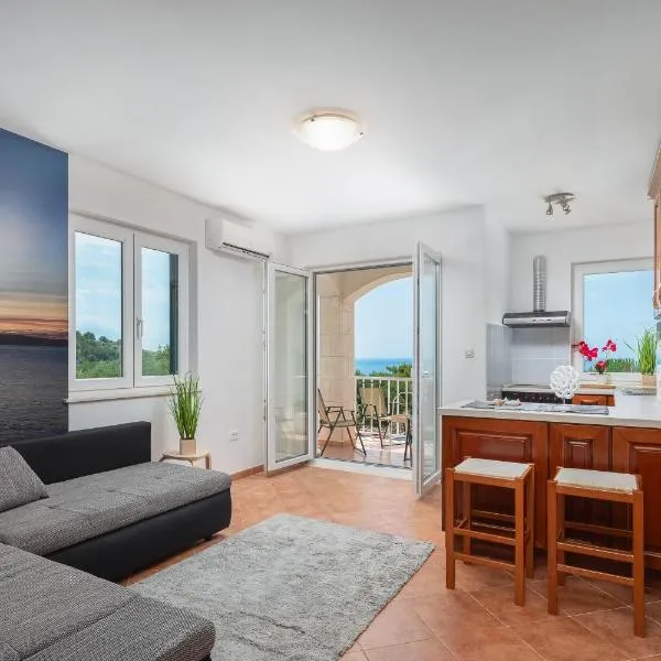 Hvar Top View Apartment位于赫瓦尔,提供免费WiFi、空调、花园和露台,距离方濟會修道院海灘(Franciscan Monastery Beach)有9分钟步行路程,距离Hvar's Theatre and Arsenal有800米。内部提供私人停车位。 这家公寓为客人提供阳台、休息区、卫星频道平板电视、带冰箱和炉灶的设施齐全的厨房以及带浴缸或淋浴设施和吹风机的私人浴室。
