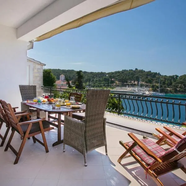Stellaris Apartmani坐落于马斯林尼察,享有海景,拥有免费WiFi和免费私人停车位,距离马斯利尼察海滩(Maslinica Beach)有3分钟步行路程。 这家公寓享有市景,为客人提供露台、休息区、卫星频道平板电视、带冰箱和洗碗机的设施齐全的厨房以及带淋浴设施和免费洗浴用品的私人浴室。住宿还配备烤箱、炉灶、吐司机和电热水壶。 客人可以在这家住宿的花园内放松身心。...