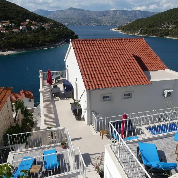 Villa Lokanjac with pool and panoramic sea view享有海景,配备阳台和电热水壶,距离亚德兰卡门海滩(Jadrankamen Beach)约有17分钟步行路程。这家自助式别墅拥有私人泳池、花园和免费私人停车位。 这家空调别墅配有2间卧室、起居室、带冰箱和咖啡机的设施齐全的厨房以及2间带淋浴设施和吹风机的浴室。这家别墅也拥有休息区和2间浴室。