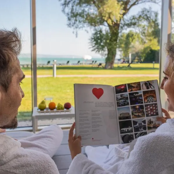 Mövenpick Balaland Resort Lake Balaton位于桑托德,面向海滨,提供尊贵型住宿,配有季节性室外泳池、私人海滩区和共用休息室。这家住宿配备儿童俱乐部,还为客人提供餐厅、水上公园和露台。住宿提供24小时前台、机场交通服务、客房服务以及免费WiFi。...