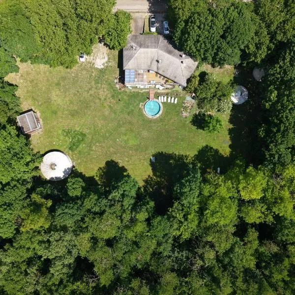 Három Dió Vendégház位于Nyim,享有花园景,提供季节性室外泳池、花园、共用休息室、露台和烧烤设施。住宿提供的免费WiFi,内部提供私人停车位。 房间配有带冰箱和咖啡机的设施齐全的厨房、平板电视以及带淋浴设施的私人浴室。住宿配备微波炉、炉灶和电热水壶。 这家公寓的客人可以使用热水浴池。 住宿内部配备儿童游乐场。