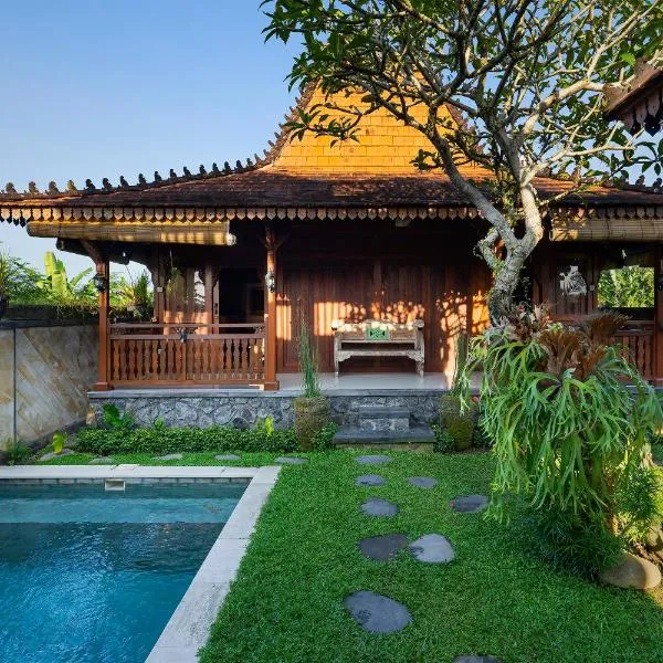 Oemah Joglo Bali位于乌布,距离布兰科文艺复兴博物馆有不到8.3公里,距离乌布猴林有8.4公里,提供免费WiFi、空调和户外游泳池。这家自助式别墅拥有私人泳池、花园和免费私人停车位。 这家别墅提供露台,享有山景,配有2间卧室、起居室、平板电视、带冰箱和炉灶的设施齐全的厨房以及2间带坐浴盆的浴室。2间浴室配有淋浴设施,也为客人提供免费洗浴用品,提供毛巾和床上用品。