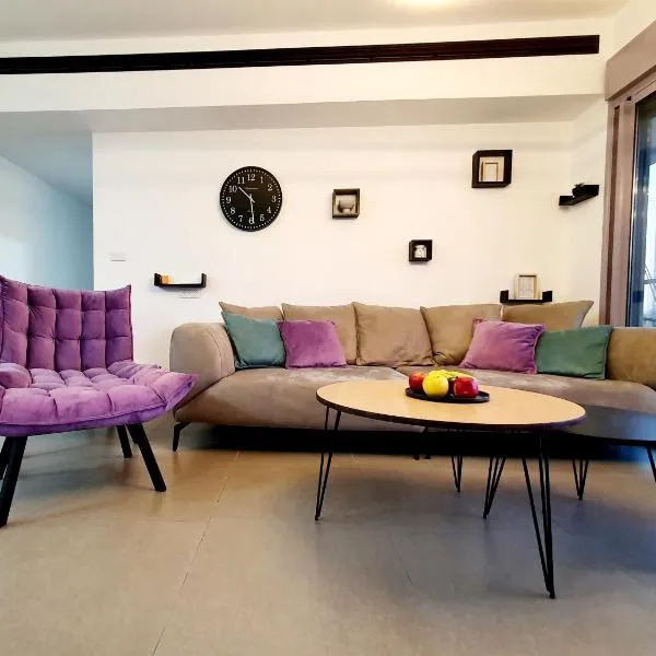 Красивая квартира в центре Нагарии坐落于纳哈里亚,距离索科洛夫海滩(Sokolov Beach)有18分钟步行路程,距离阿卡巴哈伊花园有7.9公里,距离海法市剧院有31公里。这家公寓享有市景和花园景,也拥有免费WiFi。 这家空调公寓配有1间卧室、起居室、带冰箱和电热水壶的设施齐全的厨房以及1间带淋浴设施和吹风机的浴室。这家公寓也配有休息区和1间浴室。