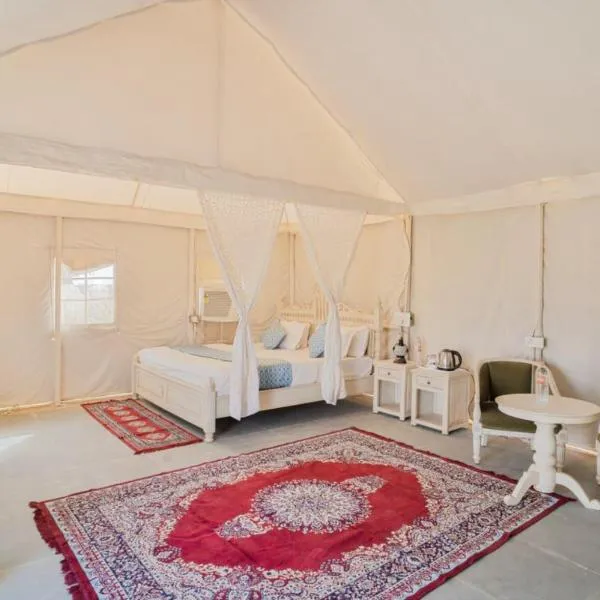 Desert Heaven Camp - A Family Luxury Resort Jaisalmer位于斋沙默尔,提供豪华型住宿,拥有花园、餐厅和酒吧,距离杰伊瑟尔梅尔堡有43公里。这家住宿配有ATM取款机,还为客人提供儿童游乐区。住宿为客人配备客房服务和24小时前台。 所有客房均配有迷你吧、吐司机、电热水壶、热水浴池、吹风机和书桌。