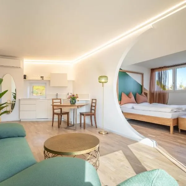 Com um centro de bem-estar luxuoso, banheira de hidromassagem ao ar livre aberta durante todo o ano, 2 piscinas infantis e uma piscina de 25 m2 com praia, o Weinegg é um hotel 5 estrelas rodeado por...