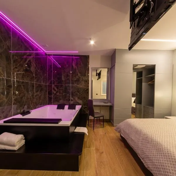Rossi&Nero Resort - servizi extra a pagamento Ristorante Piscina Sauna Spa位于Pasquarelli,享有市景,提供餐厅、共用休息室、酒吧、花园和露台。住宿提供免费WiFi,内部提供私人停车位。 所有房间均配有休息区、带卫星频道的平板电视以及带免费洗浴用品、坐浴盆、淋浴设施和热水浴池的私人浴室。