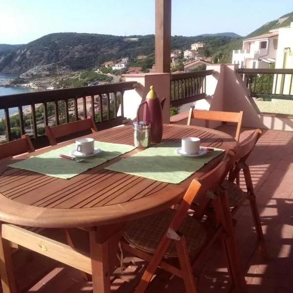 Casa vacanze con terrazza panoramica vista mare queda aproximadamente a 16 minutos a pie de Spiaggia di Portu Maga y ofrece alojamiento con vista al mar, balcón y pava.