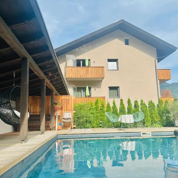 Boutique-Hotel Ballguthof am Golfplatz位于拉纳,距离特拉特曼斯多夫城堡花园有8.7公里,提供免费自行车、免费私人停车位、季节性室外泳池和健身中心。这家住宿提供各种设施,包括共用休息室、餐厅和酒吧。空调客房享有池景,配有衣柜和免费WiFi。 这家酒店的所有客房都配备书桌、平板电视、私人浴室、床上用品、毛巾和山景露台。部分客房拥有带冰箱、洗碗机和微波炉的厨房。