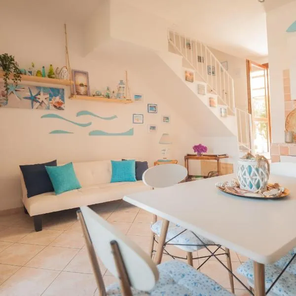 Appartamento in residence fronte mare 位於默塔瑪麗亞,設有空調住宿和戶外休息區。這間住宿的住客可以使用陽台和免費私人停車位。 這間公寓享有海景,設有露台,有 1 間臥室、起居室、衛星頻道平面電視、設備齊全的廚房以及 1 間附沖洗座和淋浴設施的衛浴。這間公寓提供毛巾和寢具。