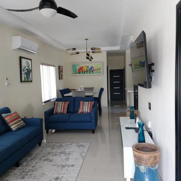 2BR Villa Ocean Views Beach 5mins to Airport坐落于Boscobel。这家自助式公寓配有花园和免费私人停车位。 这家公寓拥有2间卧室、带有线频道的平板电视、带冰箱和烤箱的设施齐全的厨房、洗衣机以及1间带淋浴设施的浴室。1间浴室提供吹风机。 伊恩·弗莱明国际机场(Ian Fleming International)距离住宿有2公里。