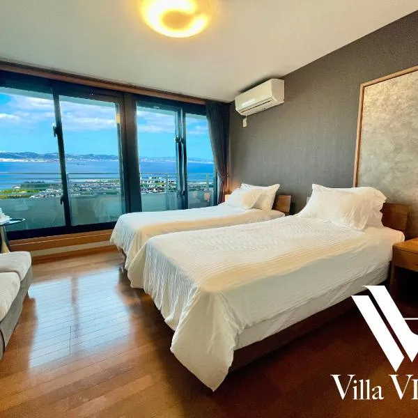 Sweet Villa OHJIMA享有海景,提供阳台和电热水壶,距离斋场御岳约有11公里。这家住宿距离米原海滩(Mibaru Beach)有2.6公里,配备露台和免费私人停车位。 这家空调别墅配有2间卧室、起居室、带冰箱和咖啡机的设施齐全的厨房以及2间带坐浴盆和淋浴设施的浴室。2间浴室配有热水浴池,也配有免费洗浴用品,提供毛巾和床上用品。 这家别墅的客人可以使用热水浴池。