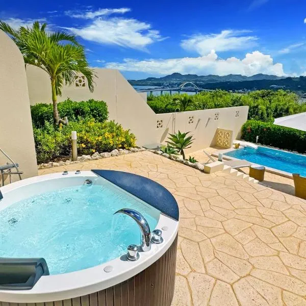 Villa・Charme位于本部,距离今归仁城有11公里。客人可以使用热水浴池。这家住宿距离戈里利亚乔普海滩(Gorilla Chop Beach)有4分钟步行路程,配备花园和免费私人停车位。 这家别墅配备2间卧室、1间浴室、床上用品、毛巾、带卫星频道的平板电视、用餐区、设施齐全的厨房以及海景露台。这家空调别墅还提供洗衣机以及1间带淋浴设施和浴缸的浴室。