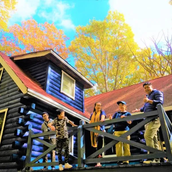 HARUNA LODGE Private log house with starry sky from the skylight, fireplace, and spacious deck BBQ位于那须町,提供花园,享有花园景,距离白河駅有19公里,距离白河小峰城有19公里。这家住宿的客人可以使用阳台、乒乓球桌、免费私人停车位和免费WiFi。...