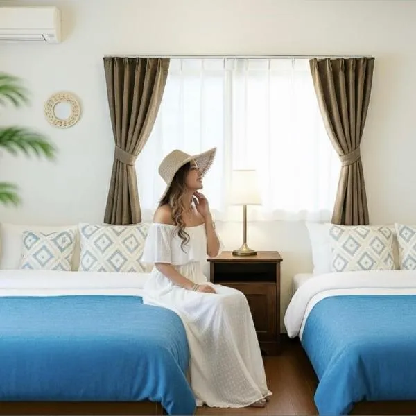 Sesoko Blue ligger i Sesoko, 2 km från Sesoko strand, och erbjuder boende med gratis cyklar, gratis privat parkering, en trädgård och en egen strand.