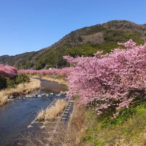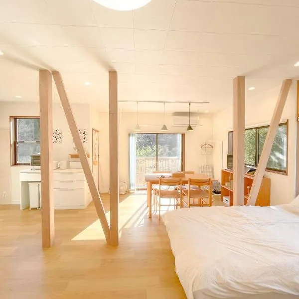 川の音を聴きながら非日常体験を-伊豆の川辺に佇む小さなアパート-一人旅歓迎位于伊豆,距离达摩山有24公里,距离恋人岬有43公里,提供免费WiFi。这家住宿距离修善寺有10公里,配备免费自行车和免费私人停车位。 这家公寓配有1间卧室、1间浴室、床上用品、毛巾、平板电视、用餐区、设施齐全的厨房以及河景阳台。这家空调公寓还提供洗衣机以及1间带坐浴盆、淋浴设施和热水浴池的浴室。