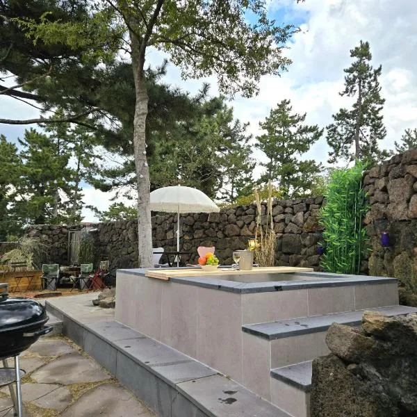 Beautipool Pension坐落于济州市,提供私人泳池和阳台,享有海景。这家住宿距离雪绿茶博物馆有12公里,配备露台和免费私人停车位。 这家空调度假屋配有3间卧室、起居室、带冰箱和咖啡机的设施齐全的厨房以及3间带坐浴盆和热水浴池的浴室。3间浴室配有浴缸和洗衣机,也配有吹风机和拖鞋。 这家度假屋的客人可以使用热水浴池。