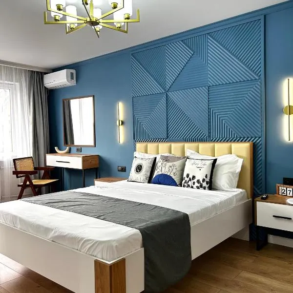 Трешка микрорайон Саулет 11坐落于Kyzylorda Region的奎兹洛达,拥有阳台。这家公寓享有市景和花园景,也配备免费WiFi。 这家空调公寓配有2间卧室、起居室、带冰箱和电热水壶的设施齐全的厨房以及1间带浴缸和免费洗浴用品的浴室。这家公寓还配备休息区、洗衣机以及1间带吹风机的浴室。 克孜勒奥尔达机场距离住宿有18公里。