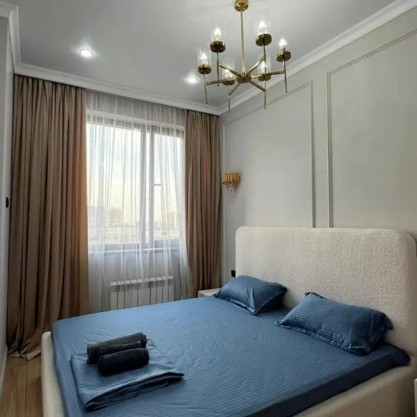 Con vista sul giardino, Красивая 2х комнатная квартира propone un alloggio dotato di terrazza e balcone, a circa 7,1 km da Atakent-Expo.